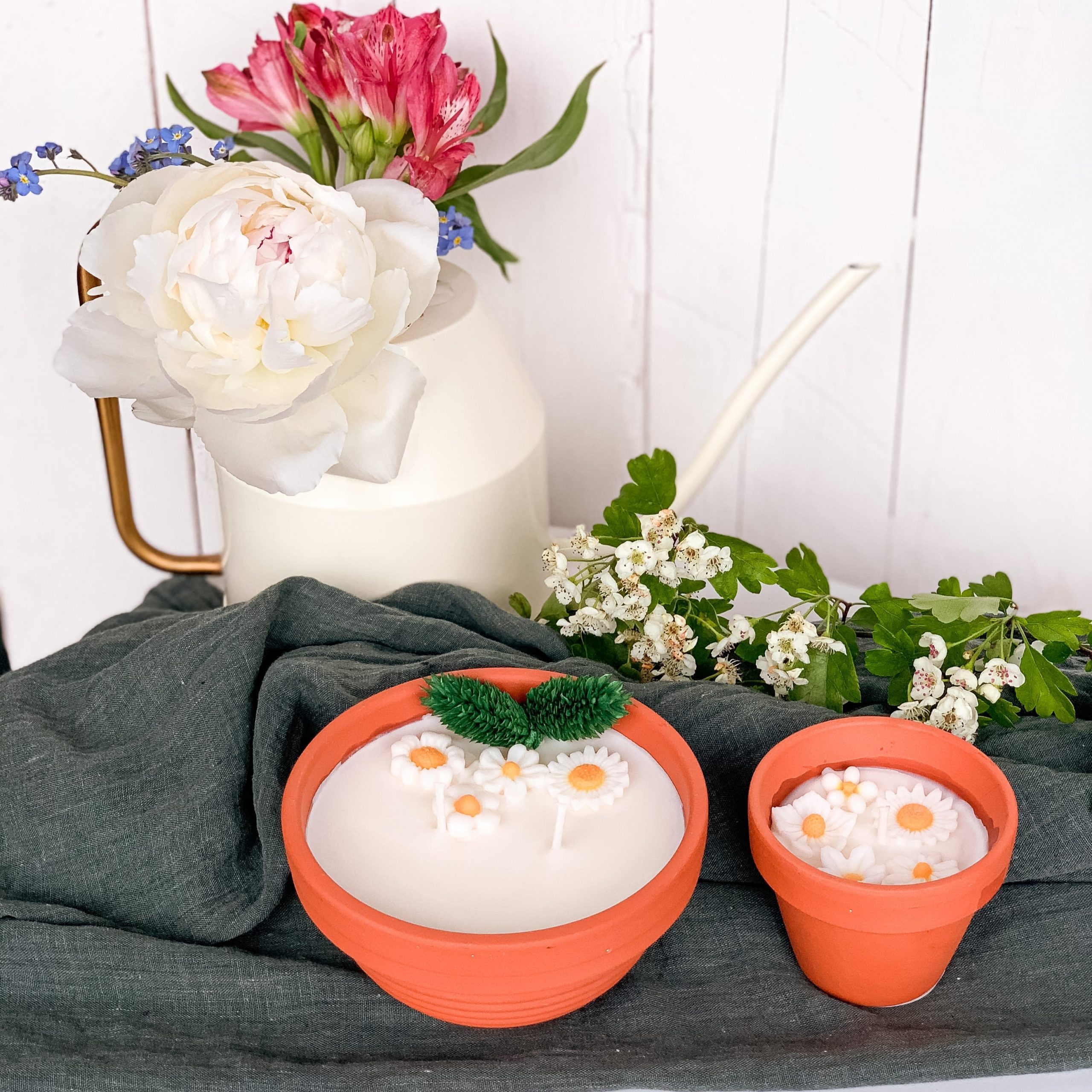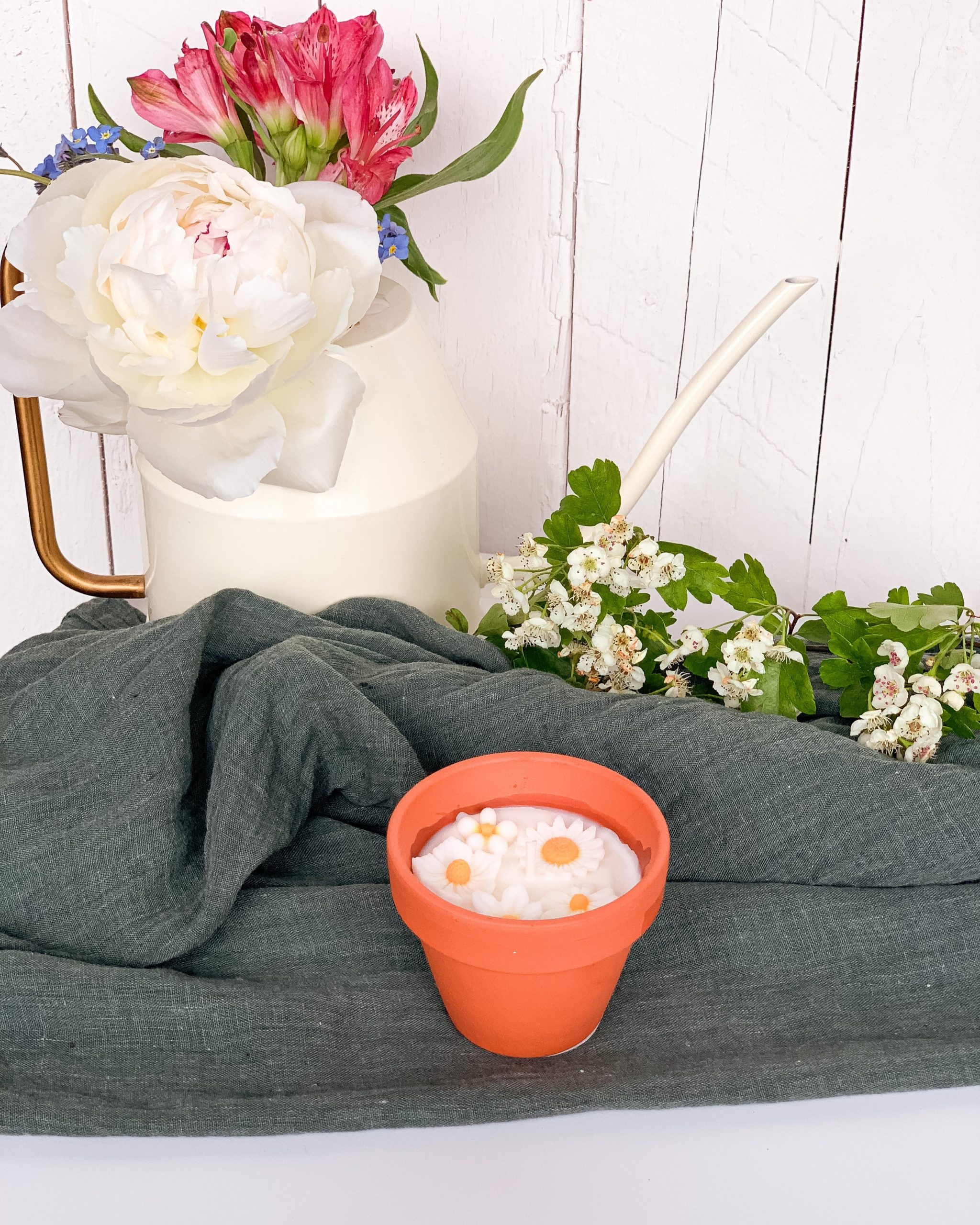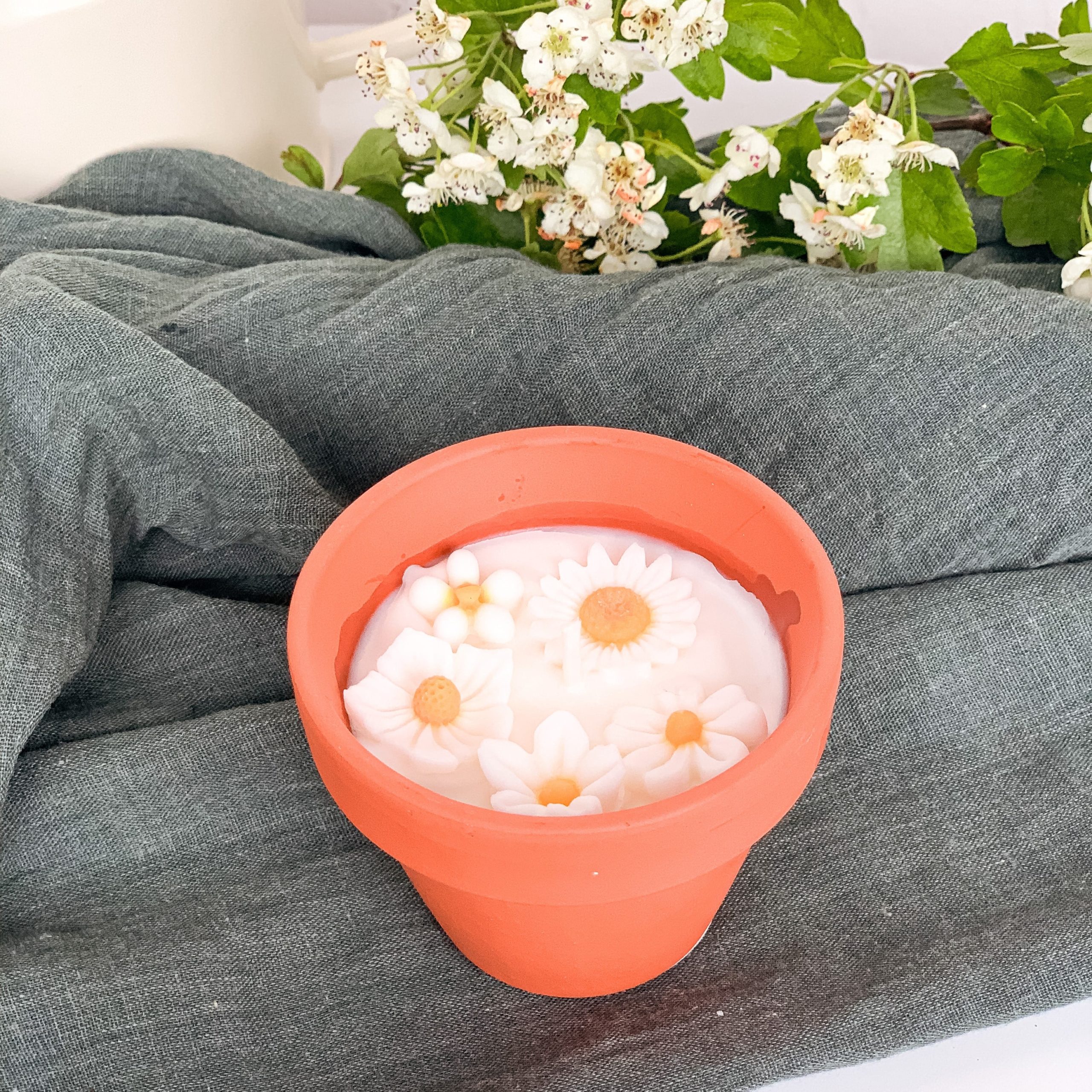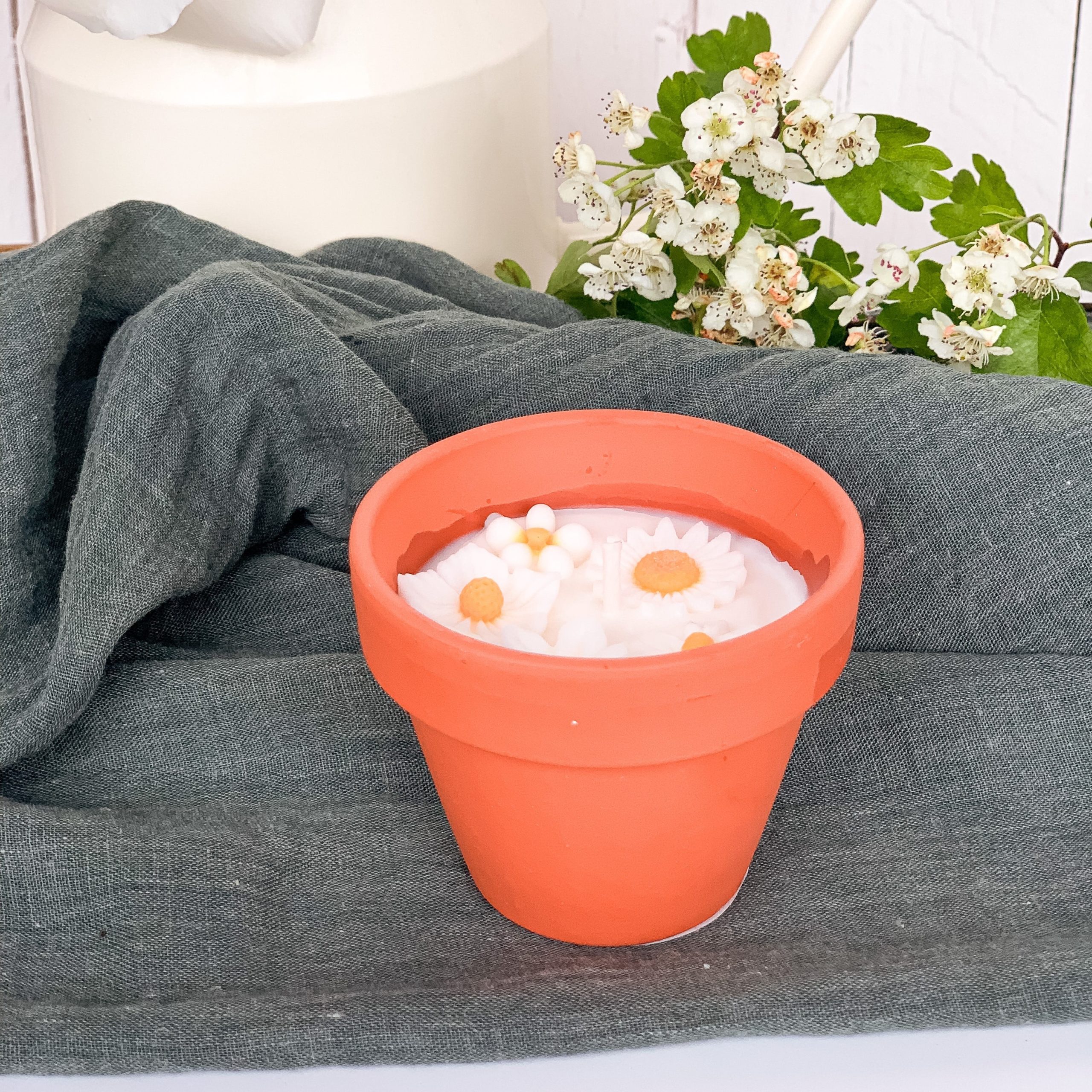 Les bougies fleuries sont coulées à la main dans mon atelier en petite quantité et peuvent présenter des petites aspérités qui leurs donnent le charme du fait main.