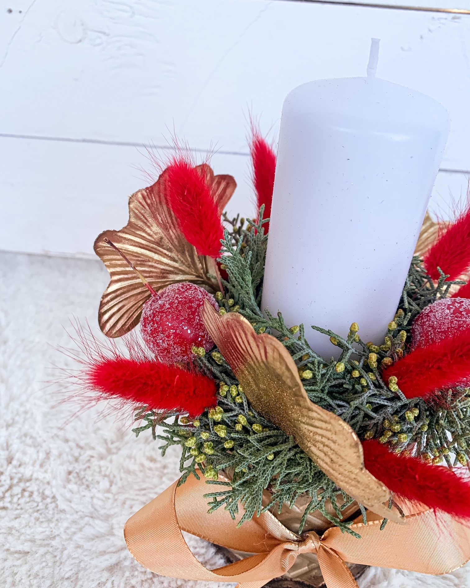 Ce bougeoir aux tonalités d'un Noël traditionnel sera habiller avec élégance votre table pour les fêtes !