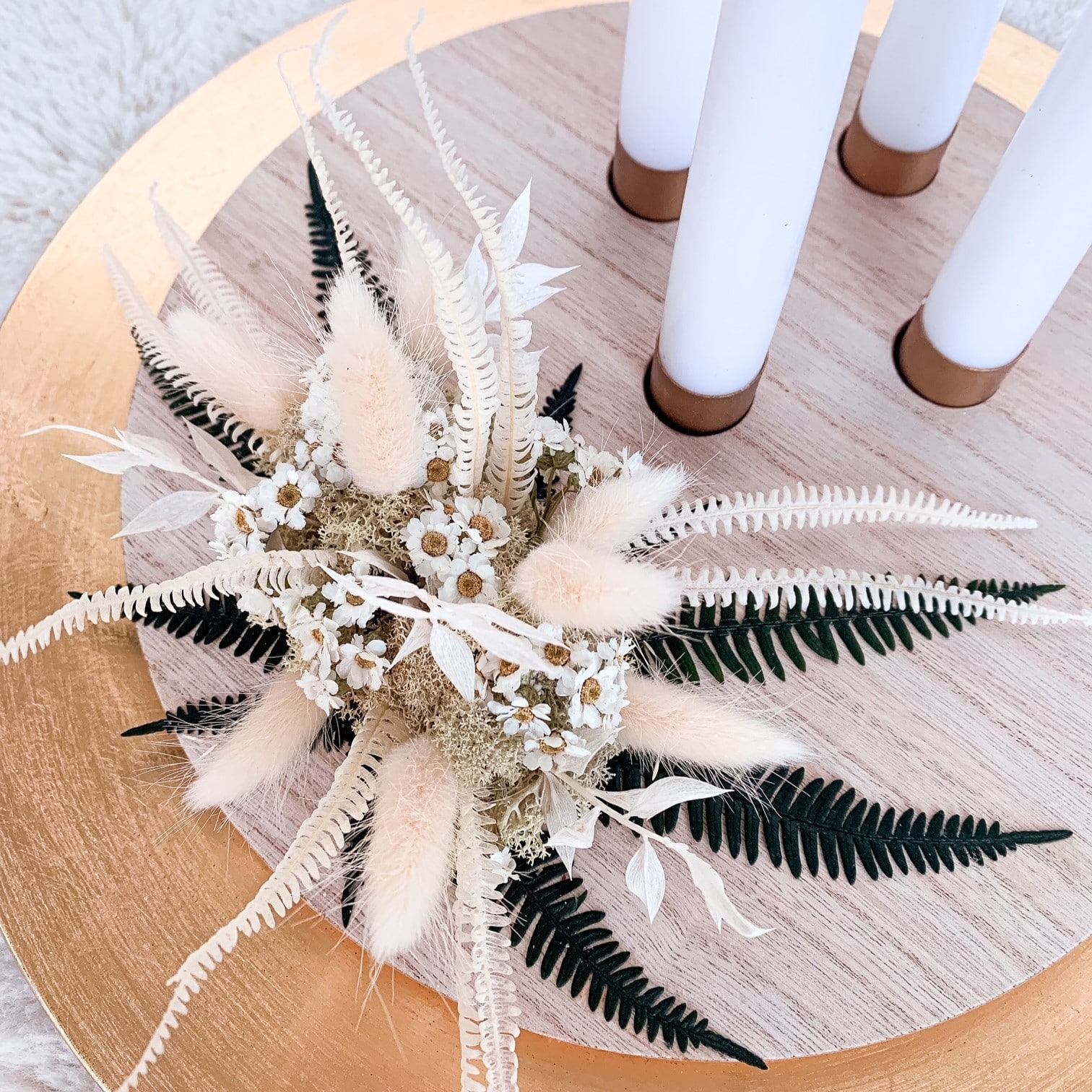 Son décor en fleurs séchées et stabilisées aux couleurs naturelles donnera à votre intérieur une touche de décoration raffinée et intemporelle.